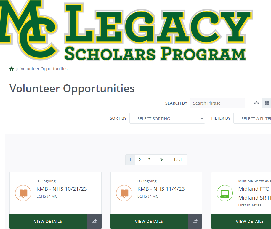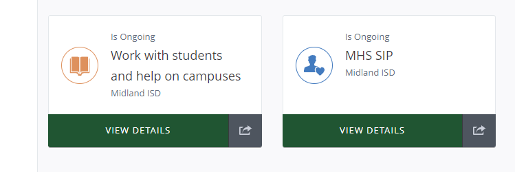 1.Click view details to open an event and see when/where/ and how many hours.