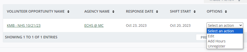 3. Once you’ve completed your volunteer work, log hours through “Volunteer Responses” on your dashboard