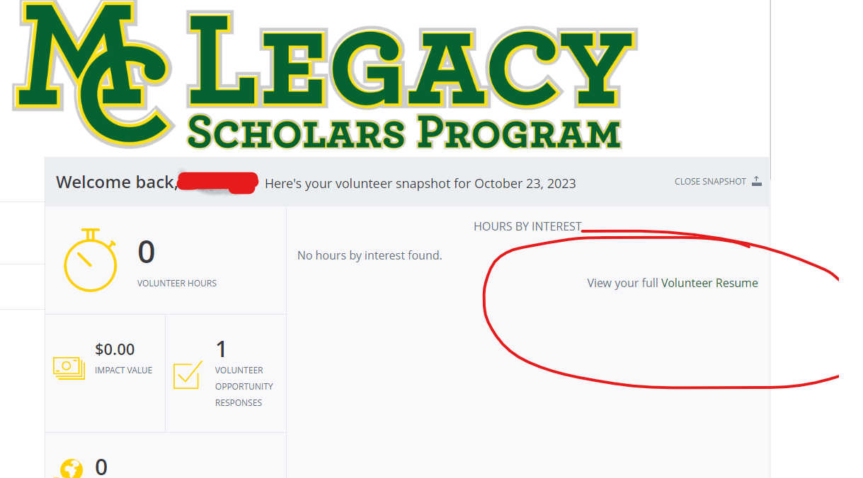 Complete the Legacy Scholars Program Applicationwith attached volunteer resume(opens in January/due May 31st)