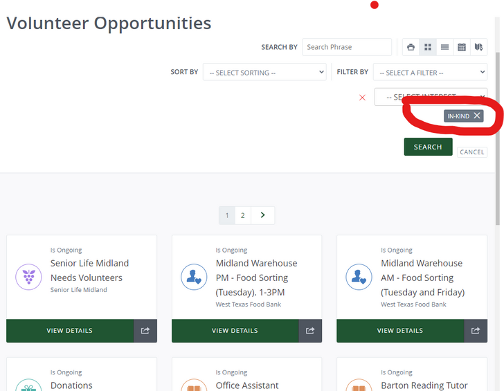 In-Kind has to do with sorting and giving physical donations